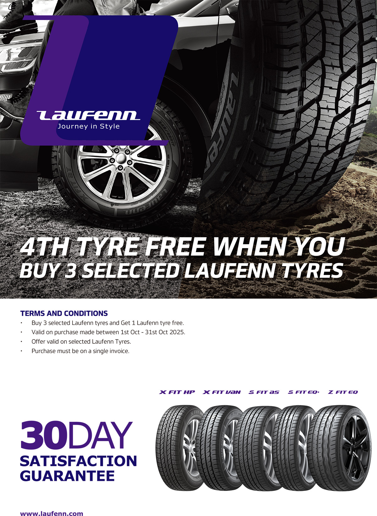 • Three (3) Laufenn tyres on same invoice to receive 1 Laufenn tyre free.