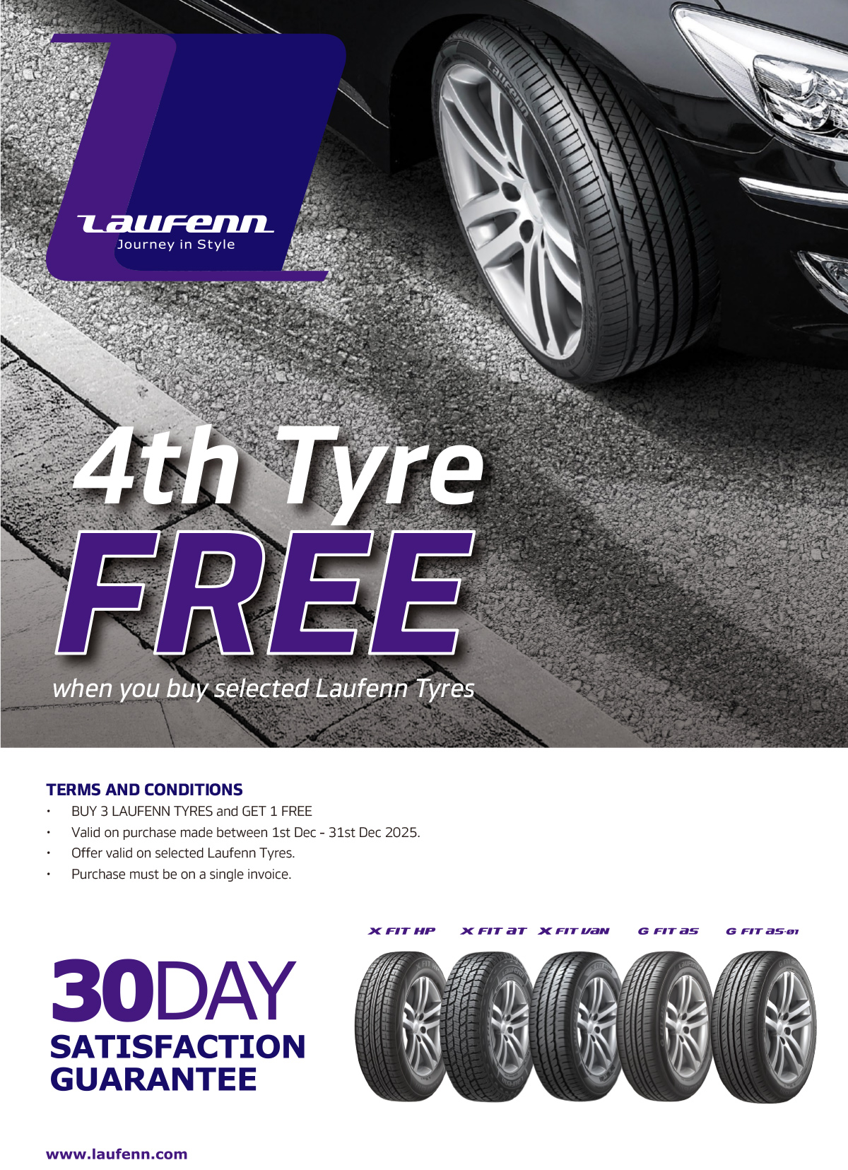 • Three (3) Laufenn tyres on same invoice to receive 1 Laufenn tyre free.